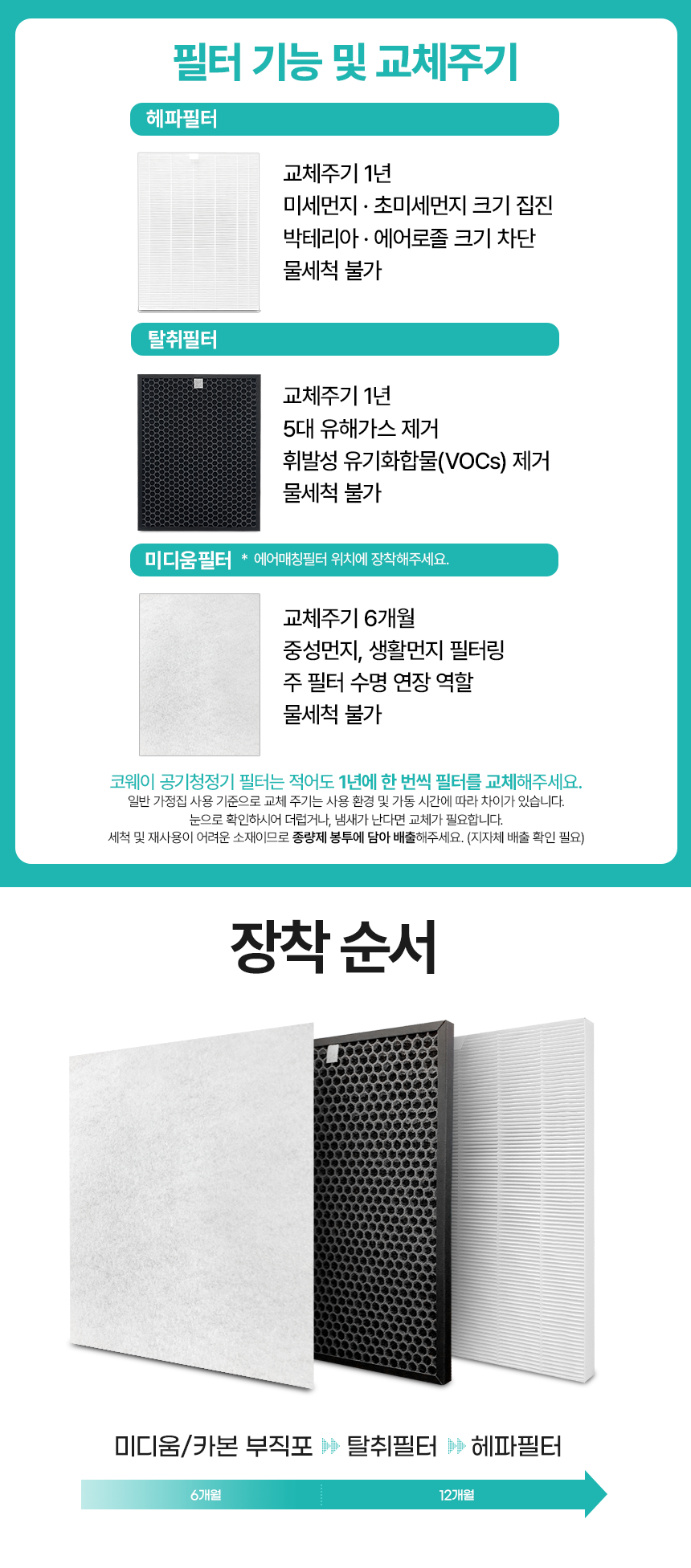 제품 구성: 헤파필터 1장, 탈취필터 1장, 미디움필터 2장