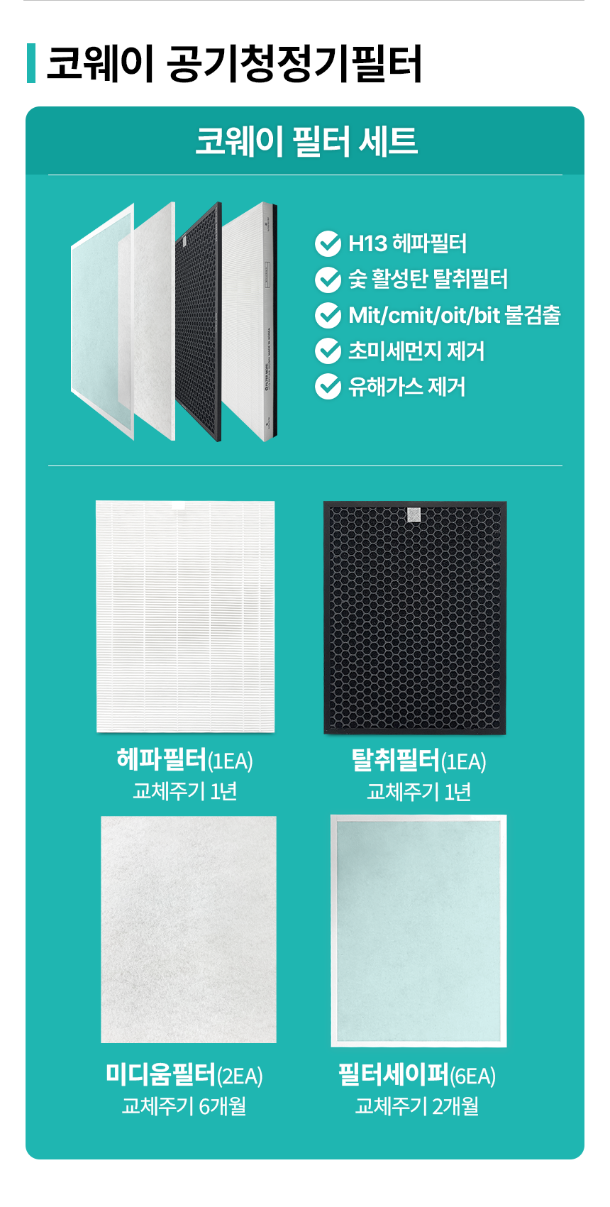 [제품구성] 마이크로 집진필터 1장, 탈취필터 1장, 미디움필터 2장, 세이퍼