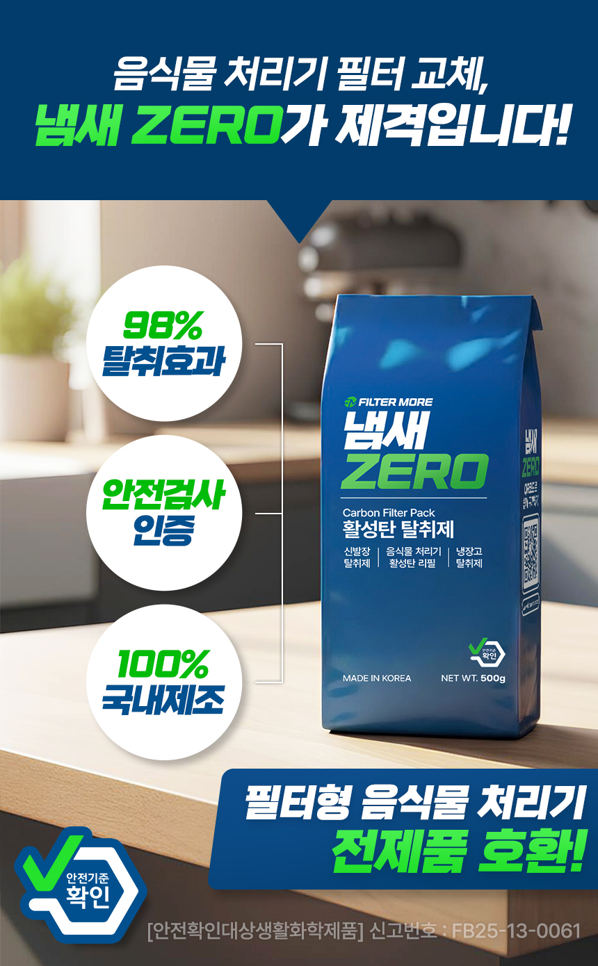 미생물/건조 방식 등 음식물 처리기 종류에 상관없이 최적의 탈취 성능 발휘! 🔄
